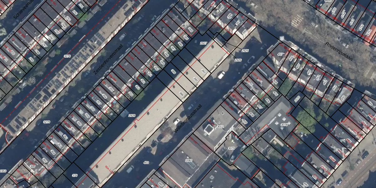 Willebrordusstraat 99-D is gelegen op kadastraal perceel RTD10AB388. Deze kadastrale aanduiding is uniek en wordt gebruikt door het Kadaster om eigendomsrechten en andere zakelijke rechten vast te leggen. Het perceel maakt onderdeel uit van de kadastrale gemeente Rotterdam.