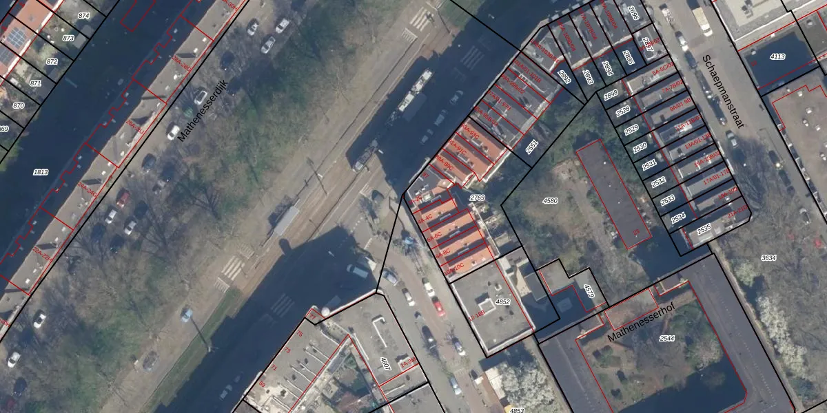 Het adres is gelegen op perceel 2769 in de sectie H en de kadastrale gemeente Delfshaven. De kadastrale aanduiding is aldus DHV00-H-2769. De gemiddelde perceeloppervlakte in de kadastrale gemeente Delfshaven is 628,61 m². Dit perceel is met zijn 721 m² dus groter dan gemiddeld. Het grootste perceel in de kadastrale gemeente is 22,2 ha. Het kleinste perceel heeft een oppervlakte van 0 m². Er zijn 25 adressen aanwezig op het perceel. De huidige grenzen van het perceel zijn digitaal in de Basisregistratie Kadaster (BRK) geregistreerd op 26-09-2005.