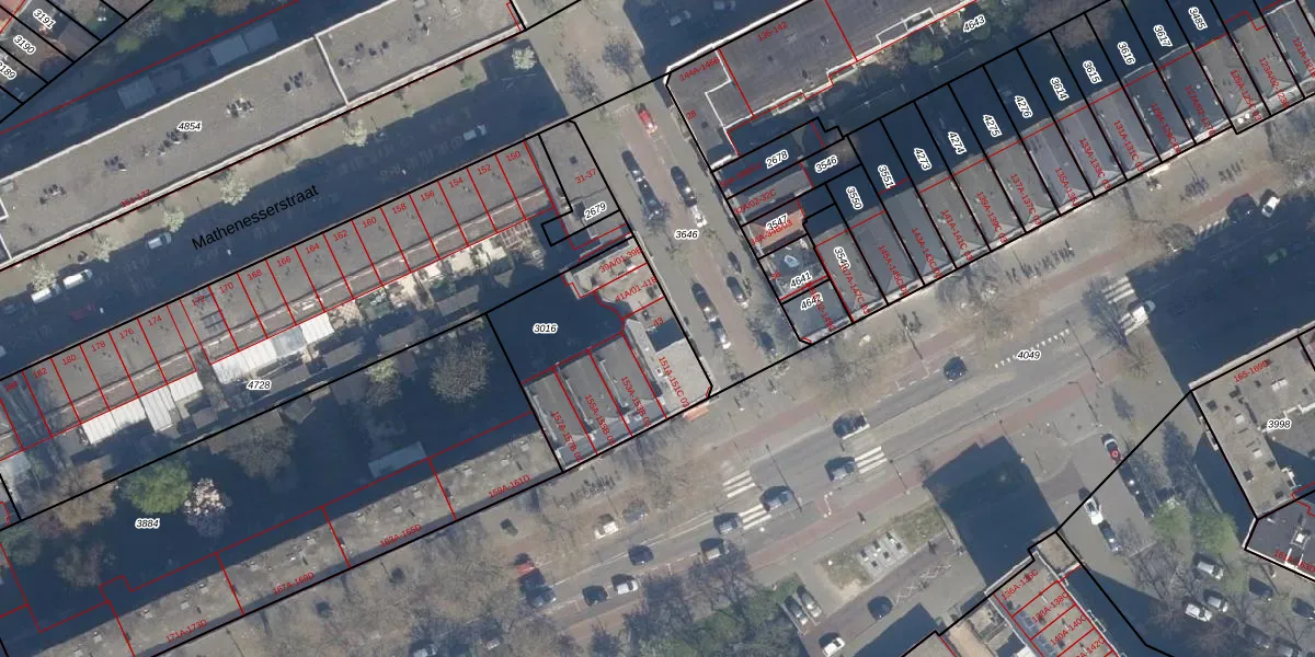 Het adres is gelegen op perceel 3016 in de sectie H en de kadastrale gemeente Delfshaven. De kadastrale aanduiding is aldus DHV00-H-3016. De gemiddelde perceeloppervlakte in de kadastrale gemeente Delfshaven is 628,61 m². Dit perceel is met zijn 697 m² dus groter dan gemiddeld. Het grootste perceel in de kadastrale gemeente is 22,2 ha. Het kleinste perceel heeft een oppervlakte van 0 m². Op het perceel zijn 20 adressen aanwezig. In de Basisregistratie Kadaster (BRK) werden de grenzen van het perceel geregistreerd op 13-03-2003.