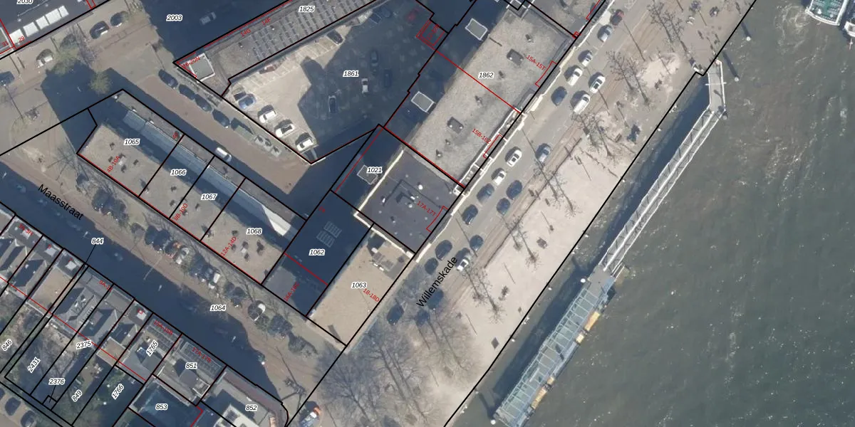 Willemskade 17-B is gelegen op kadastraal perceel RTD04AG1021. Deze kadastrale aanduiding is uniek en wordt gebruikt door het Kadaster om eigendomsrechten en andere zakelijke rechten vast te leggen. Het perceel maakt onderdeel uit van de kadastrale gemeente Rotterdam.
