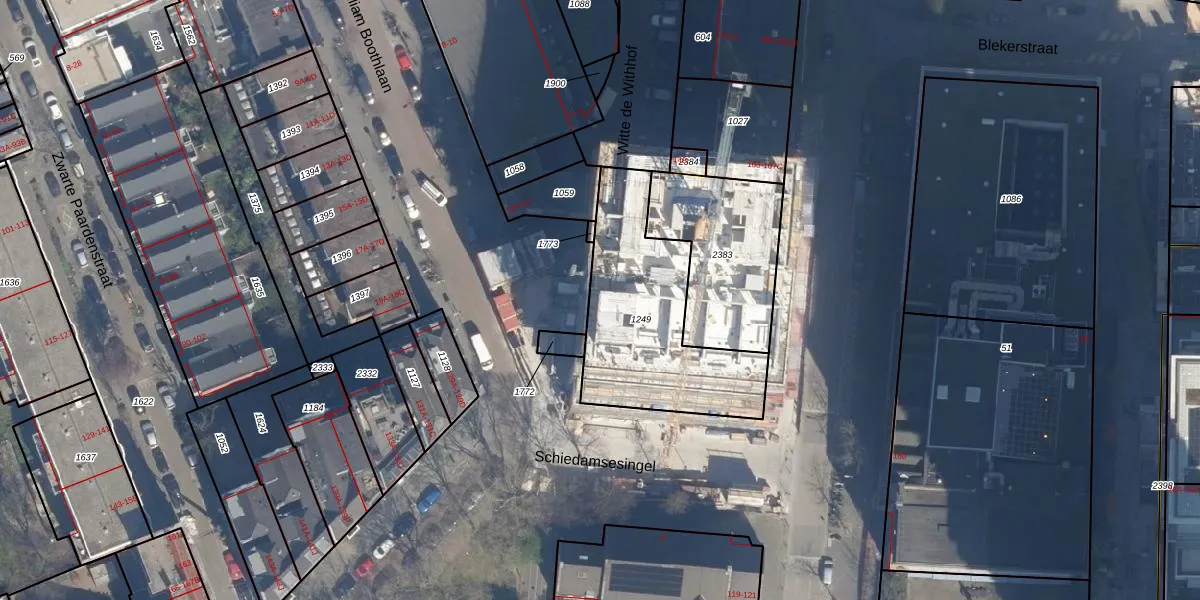 Het adres ligt op het perceel RTD04-AG-1249, dat zich in de kadastrale gemeente Rotterdam bevindt. De gemiddelde perceelgrootte in Rotterdam is 1239,97 m². Dit perceel is kleiner: de perceeloppervlakte bedraagt 711 m². Het grootste perceel in de kadastrale gemeente is 17,3 ha. Het kleinste perceel heeft een oppervlakte van 0 m². Op het perceel zijn 96 adressen aanwezig. De laatste wijziging in het de Basisregistratie Kadaster (BRK) was op 01-10-2007.