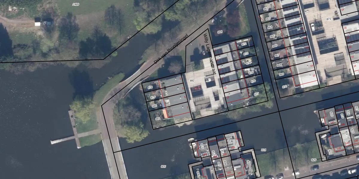 Gebruik de zoekbalk of klik op een perceel voor informatie over de adressen binnen dit perceel.