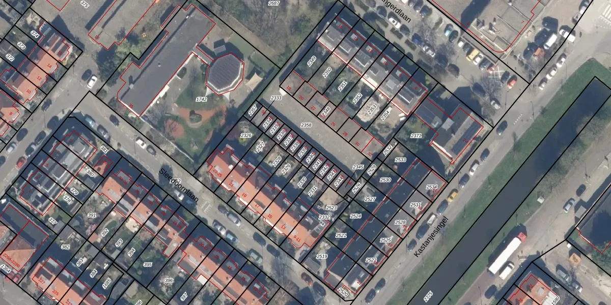 Gebruik de zoekbalk of klik op een perceel voor informatie over de adressen binnen dit perceel.
