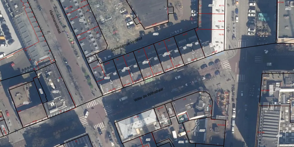 Witte de Withstraat 15-B is gelegen op kadastraal perceel RTD04AG1697. Deze kadastrale aanduiding is uniek en wordt gebruikt door het Kadaster om eigendomsrechten en andere zakelijke rechten vast te leggen. Het perceel maakt onderdeel uit van de kadastrale gemeente Rotterdam.