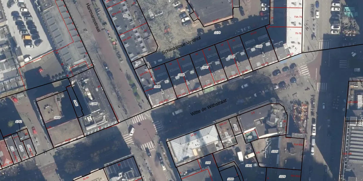 Witte de Withstraat 19-A is gelegen op kadastraal perceel RTD04AG1698. Deze kadastrale aanduiding is uniek en wordt gebruikt door het Kadaster om eigendomsrechten en andere zakelijke rechten vast te leggen. Het perceel maakt onderdeel uit van de kadastrale gemeente Rotterdam.