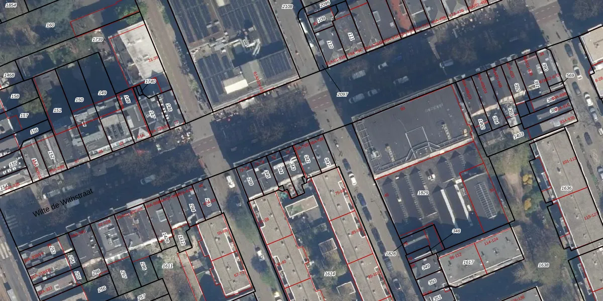 Witte de Withstraat 70-B is gelegen op kadastraal perceel RTD04AG342. Deze kadastrale aanduiding is uniek en wordt gebruikt door het Kadaster om eigendomsrechten en andere zakelijke rechten vast te leggen. Het perceel maakt onderdeel uit van de kadastrale gemeente Rotterdam.