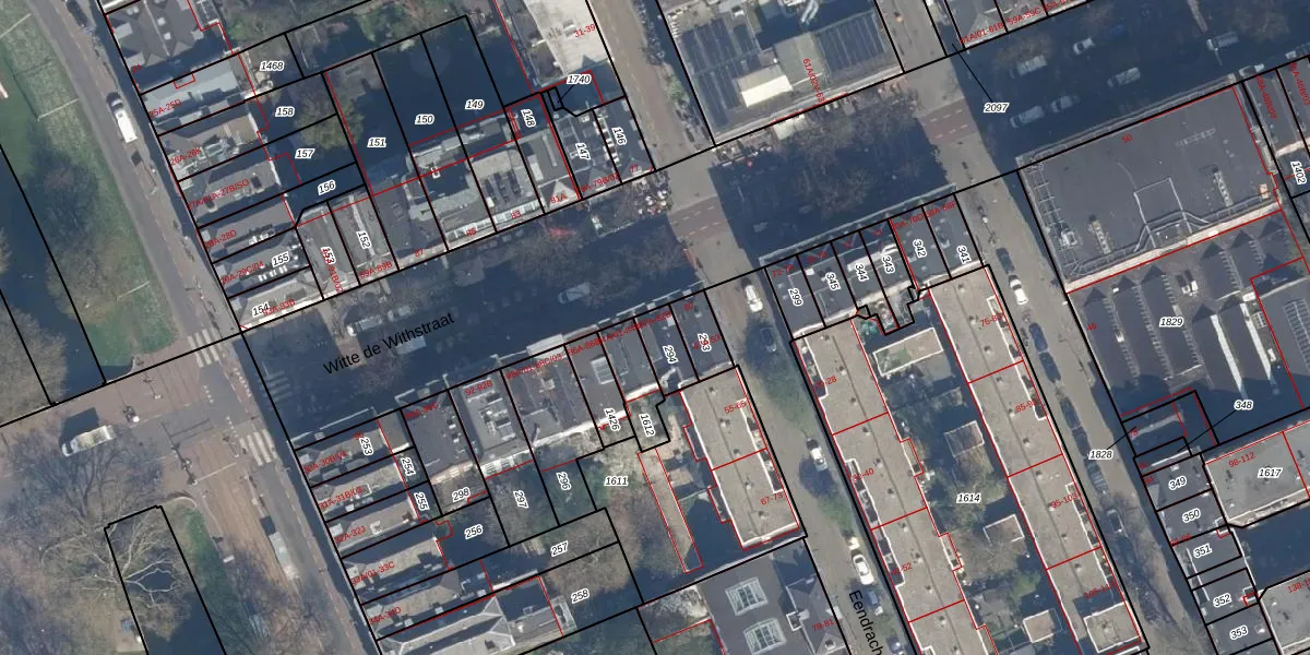 Het perceel waarop Witte de Withstraat 82-B staat heeft een oppervlakte van 76 m². Dit is een klein perceel. De perceeloppervlakte wordt geregistreerd door het Kadaster. Gedetailleerde informatie over de maten van dit perceel kunt u vinden in het rapport Kadastrale kaart met maatvoering van Witte de Withstraat 82-B.