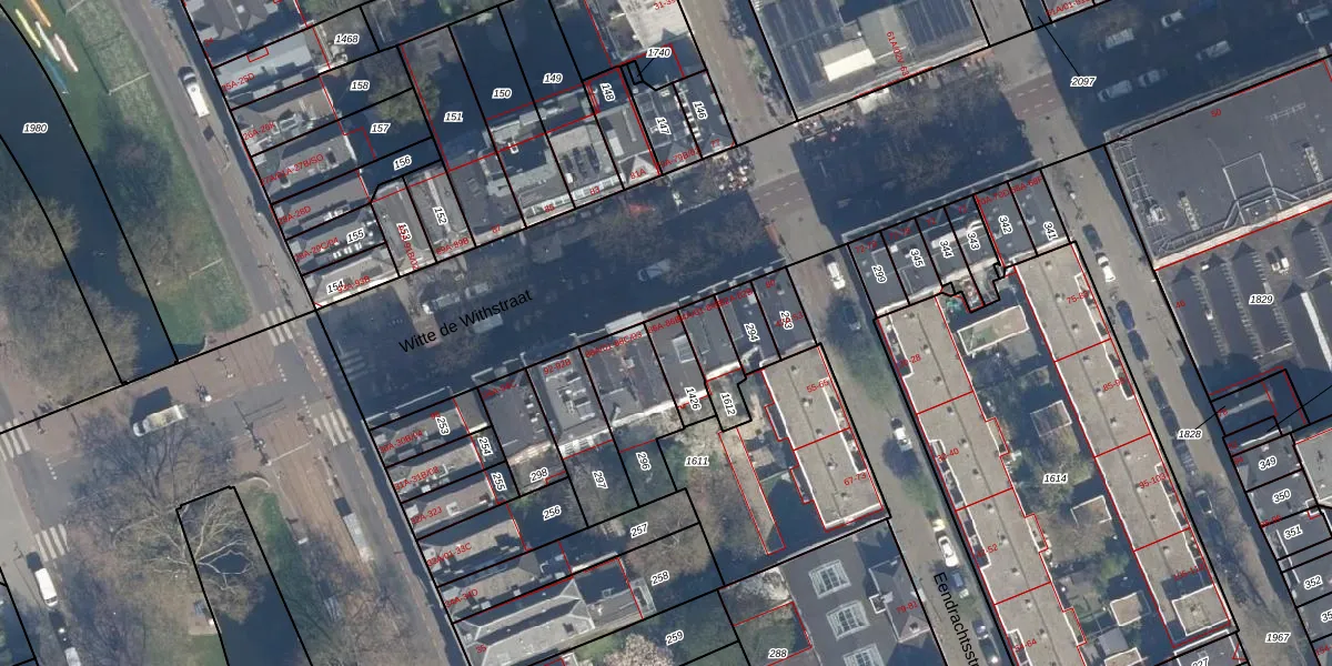 Het perceel waarop Witte de Withstraat 86-E staat heeft een oppervlakte van 89 m². Dit is een klein perceel. De perceeloppervlakte wordt geregistreerd door het Kadaster. Gedetailleerde informatie over de maten van dit perceel kunt u vinden in het rapport Kadastrale kaart met maatvoering van Witte de Withstraat 86-E.