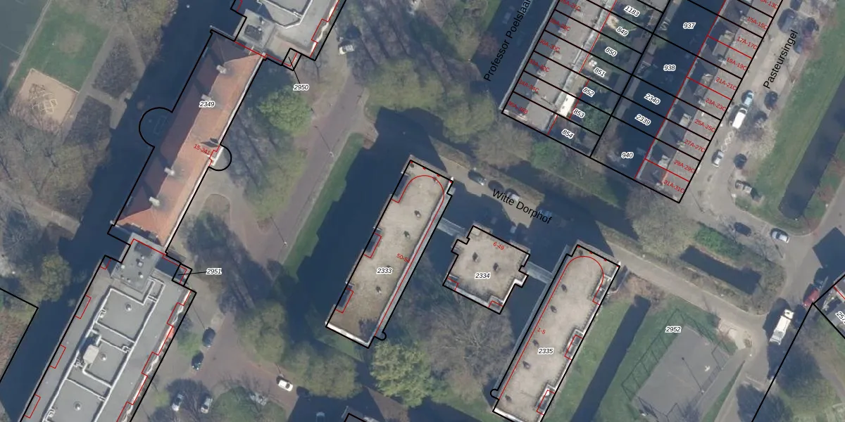 Het perceel waarop Witte Dorphof 50 staat heeft een oppervlakte van 548 m². Dit is een groot perceel. De perceeloppervlakte wordt geregistreerd door het Kadaster. Gedetailleerde informatie over de maten van dit perceel kunt u vinden in het rapport Kadastrale kaart met maatvoering van Witte Dorphof 50.