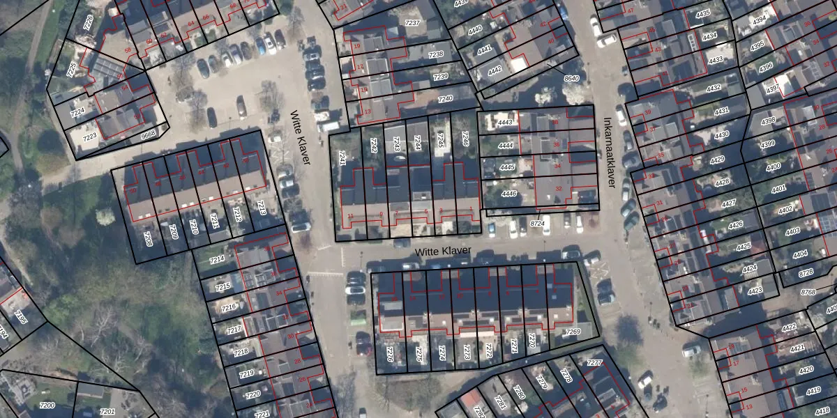 Het perceel waarop Witte Klaver 5 staat heeft een oppervlakte van 154 m². Dit is een middelgroot perceel. De perceeloppervlakte wordt geregistreerd door het Kadaster. Gedetailleerde informatie over de maten van dit perceel kunt u vinden in het rapport Kadastrale kaart met maatvoering van Witte Klaver 5.