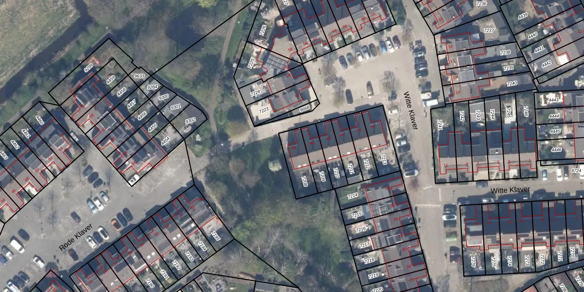 Het perceel waarop Witte Klaver 50 staat heeft een oppervlakte van 178 m². Dit is een middelgroot perceel. De perceeloppervlakte wordt geregistreerd door het Kadaster. Gedetailleerde informatie over de maten van dit perceel kunt u vinden in het rapport Kadastrale kaart met maatvoering van Witte Klaver 50.
