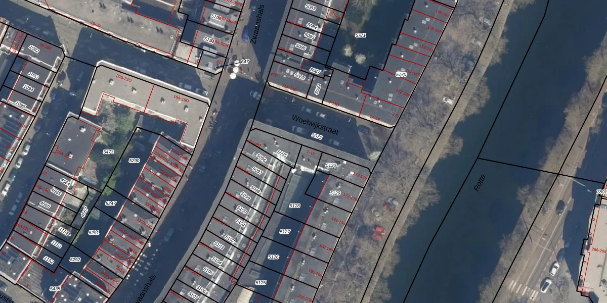 Het perceel waarop het adres ligt is RTD07-W-5128. De afkorting 'RTD07' staat voor kadastrale gemeente Rotterdam. Het perceel is kleiner dan gemiddeld in Rotterdam. Het perceel is 326 m² groot, terwijl het gemiddelde ligt op 506,86 m². Het kleinste perceel in de kadastrale gemeente is 0 m² groot. De grootste perceeloppervlakte is 10,8 ha. Op het perceel zijn 13 adressen aanwezig. De laatste wijziging in het de Basisregistratie Kadaster (BRK) was op 27-03-2006.