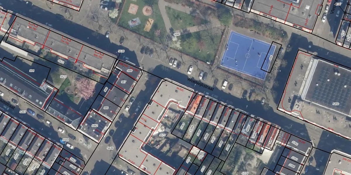 Het perceel waarop Woelwijkstraat 60-A staat heeft een oppervlakte van 1428 m². Dit is een zeer groot perceel. De perceeloppervlakte wordt geregistreerd door het Kadaster. Gedetailleerde informatie over de maten van dit perceel kunt u vinden in het rapport Kadastrale kaart met maatvoering van Woelwijkstraat 60-A.