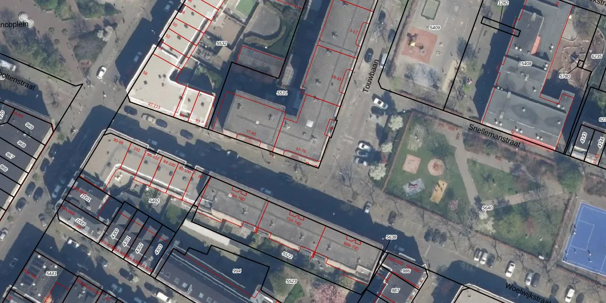 Woelwijkstraat 63 is gelegen op kadastraal perceel RTD07W5531. Deze kadastrale aanduiding is uniek en wordt gebruikt door het Kadaster om eigendomsrechten en andere zakelijke rechten vast te leggen. Het perceel maakt onderdeel uit van de kadastrale gemeente Rotterdam.
