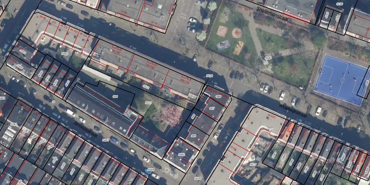 Het perceel waarop het adres ligt is RTD07-W-5522. De afkorting 'RTD07' staat voor kadastrale gemeente Rotterdam. De gemiddelde perceeloppervlakte in de kadastrale gemeente Rotterdam is 506,86 m². Dit perceel is met zijn 1015 m² dus groter dan gemiddeld. De grootste perceeloppervlakte in de kadastrale gemeente is 10,8 ha. De kleinste oppervlakte bedraagt 0 m². Er zijn 22 adressen aanwezig op het perceel. De huidige grenzen van het perceel zijn digitaal in de Basisregistratie Kadaster (BRK) geregistreerd op 31-12-2002.