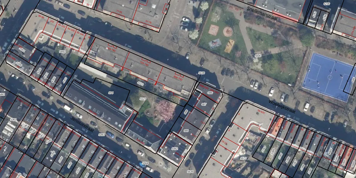 Het perceel waarop het adres ligt is RTD07-W-5522. De afkorting 'RTD07' staat voor kadastrale gemeente Rotterdam. De gemiddelde perceeloppervlakte in de kadastrale gemeente Rotterdam is 506,86 m². Dit perceel is met zijn 1015 m² dus groter dan gemiddeld. De grootste perceeloppervlakte in de kadastrale gemeente is 10,8 ha. De kleinste oppervlakte bedraagt 0 m². Er zijn 22 adressen aanwezig op het perceel. In de Basisregistratie Kadaster (BRK) werden de grenzen van het perceel geregistreerd op 31-12-2002.