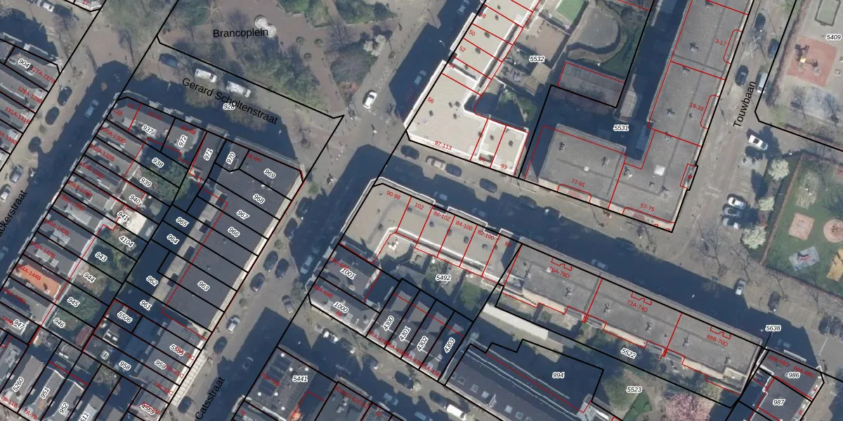 Het perceel waarop het adres ligt is RTD07-W-5492. De afkorting 'RTD07' staat voor kadastrale gemeente Rotterdam. Het perceel is met 716 m² relatief groot. Het gemiddelde ligt in de kadastrale gemeente Rotterdam op 506,86 m². Het grootste perceel in de kadastrale gemeente is 10,8 ha. Het kleinste perceel heeft een oppervlakte van 0 m². Er zijn 12 adressen aanwezig op het perceel. In de Basisregistratie Kadaster (BRK) werden de grenzen van het perceel geregistreerd op 08-05-2003.
