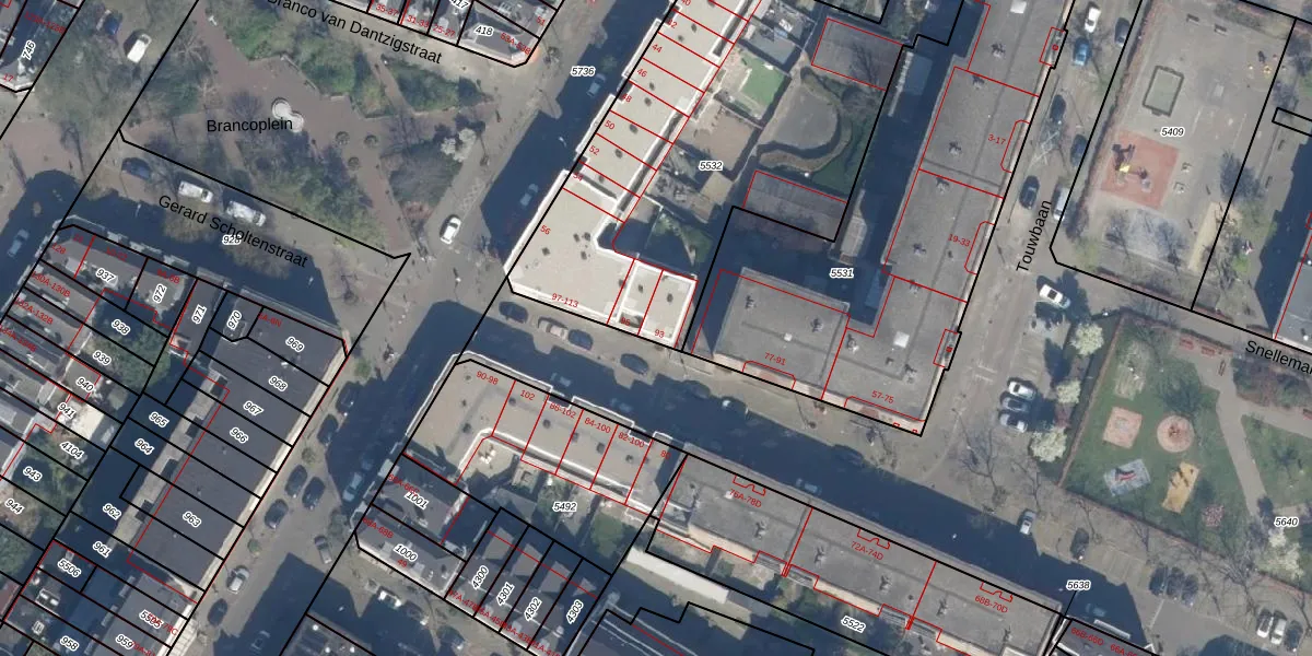 Het perceel waarop het adres ligt is RTD07-W-5532. De afkorting 'RTD07' staat voor kadastrale gemeente Rotterdam. Het perceel is met 2360 m² relatief groot. Het gemiddelde ligt in de kadastrale gemeente Rotterdam op 506,86 m². Het grootste perceel in de kadastrale gemeente is 10,8 ha. Het kleinste perceel heeft een oppervlakte van 0 m². Er zijn 35 adressen aanwezig op het perceel. De laatste wijziging in het de Basisregistratie Kadaster (BRK) was op 08-05-2003.