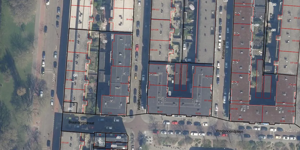 Wollefoppenstraat 146 is gelegen op kadastraal perceel RTD04AE880. Deze kadastrale aanduiding is uniek en wordt gebruikt door het Kadaster om eigendomsrechten en andere zakelijke rechten vast te leggen. Het perceel maakt onderdeel uit van de kadastrale gemeente Rotterdam.