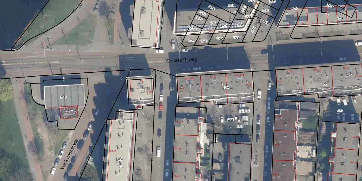 Het perceel waarop het adres ligt is RTD04-AE-796. De afkorting 'RTD04' staat voor kadastrale gemeente Rotterdam. De gemiddelde perceelgrootte in Rotterdam is 1239,97 m². Dit perceel is kleiner: de perceeloppervlakte bedraagt 668 m². Het kleinste perceel in de kadastrale gemeente is 0 m² groot. De grootste perceeloppervlakte is 17,3 ha. Er zijn 24 adressen aanwezig op het perceel. De laatste wijziging in het de Basisregistratie Kadaster (BRK) was op 04-05-2007.