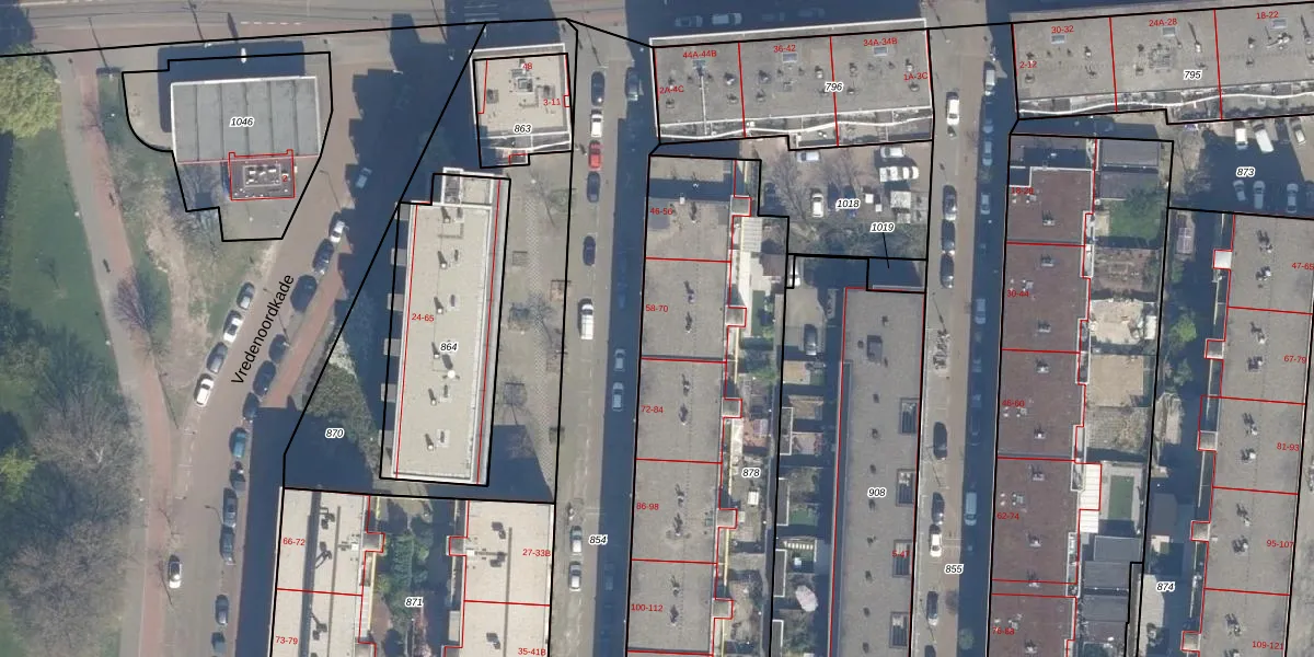 Het perceel waarop het adres ligt is RTD04-AE-878. De afkorting 'RTD04' staat voor kadastrale gemeente Rotterdam. Het perceel is met 2164 m² relatief groot. Het gemiddelde ligt in de kadastrale gemeente Rotterdam op 1239,97 m². Het kleinste perceel in de kadastrale gemeente is 0 m² groot. De grootste perceeloppervlakte is 17,3 ha. Er zijn 48 adressen aanwezig op het perceel. In de Basisregistratie Kadaster (BRK) werden de grenzen van het perceel geregistreerd op 04-05-2007.