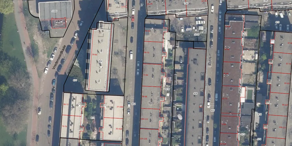 Het perceel waarop het adres ligt is RTD04-AE-878. De afkorting 'RTD04' staat voor kadastrale gemeente Rotterdam. Het perceel is met 2164 m² relatief groot. Het gemiddelde ligt in de kadastrale gemeente Rotterdam op 1239,97 m². De grootste perceeloppervlakte in de kadastrale gemeente is 17,3 ha. De kleinste oppervlakte bedraagt 0 m². Op het perceel liggen in totaal 48 adressen. De laatste wijziging in het de Basisregistratie Kadaster (BRK) was op 04-05-2007.