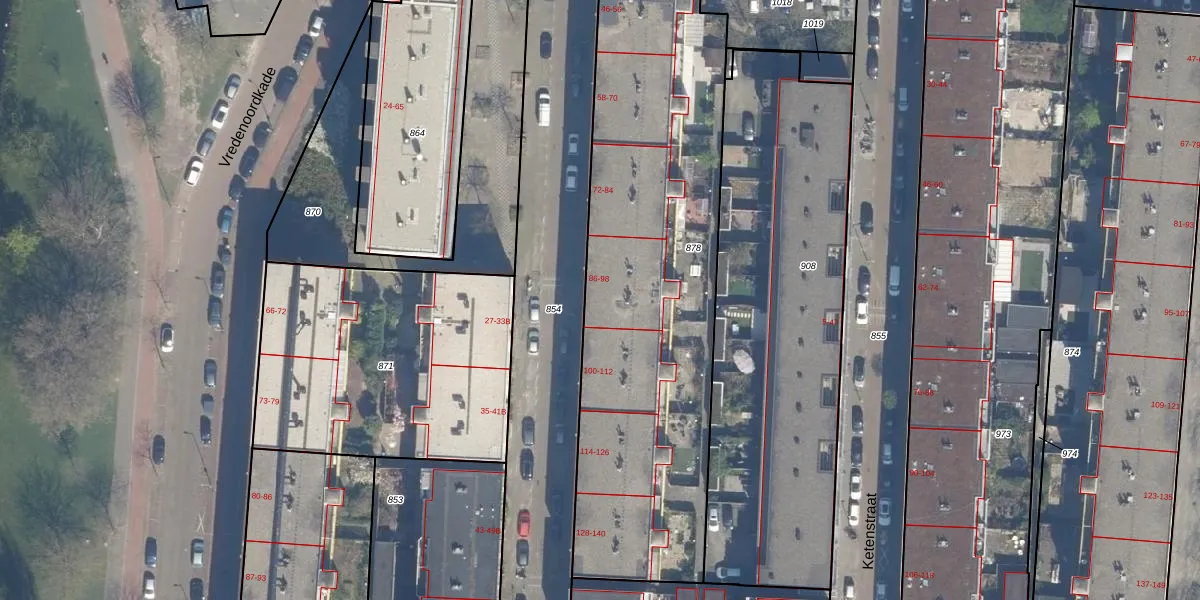 Het perceel waarop het adres ligt is RTD04-AE-878. De afkorting 'RTD04' staat voor kadastrale gemeente Rotterdam. Het perceel is met 2164 m² relatief groot. Het gemiddelde ligt in de kadastrale gemeente Rotterdam op 1239,97 m². De grootste perceeloppervlakte in de kadastrale gemeente is 17,3 ha. De kleinste oppervlakte bedraagt 0 m². Er zijn 48 adressen aanwezig op het perceel. De laatste wijziging in het de Basisregistratie Kadaster (BRK) was op 04-05-2007.