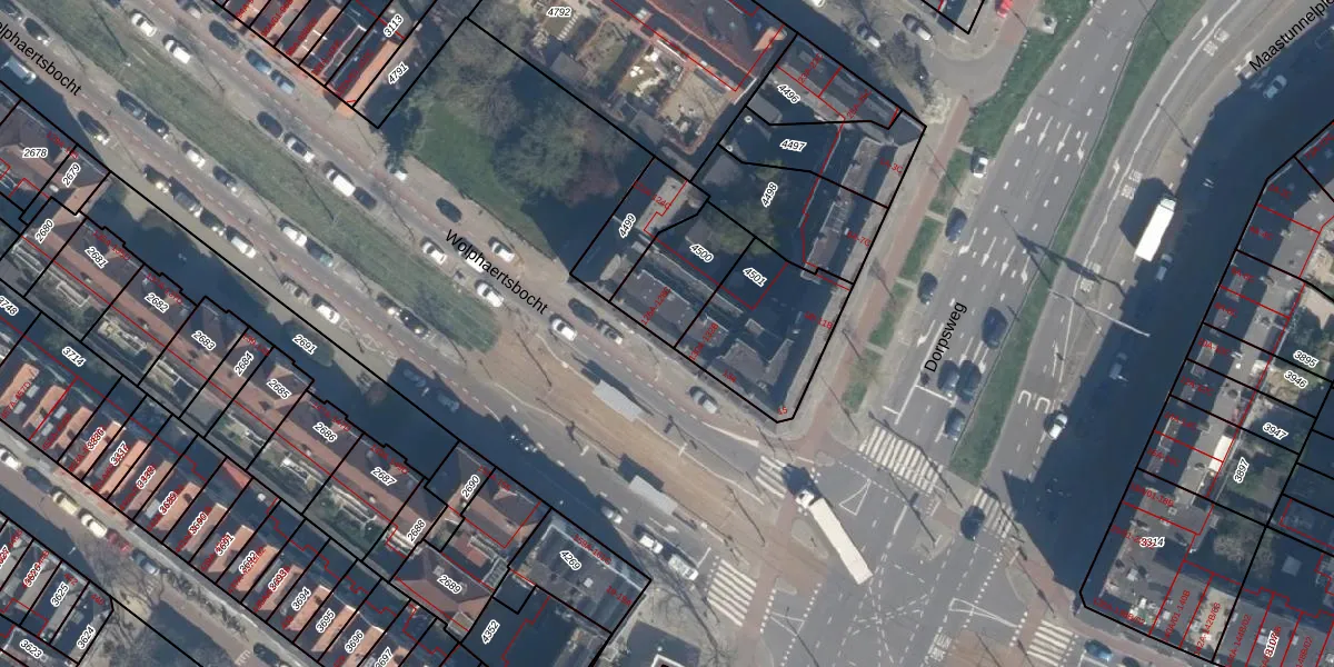 Wolphaertsbocht 128-A is gelegen op kadastraal perceel CLS00E4500. Deze kadastrale aanduiding is uniek en wordt gebruikt door het Kadaster om eigendomsrechten en andere zakelijke rechten vast te leggen. Het perceel maakt onderdeel uit van de kadastrale gemeente Charlois.