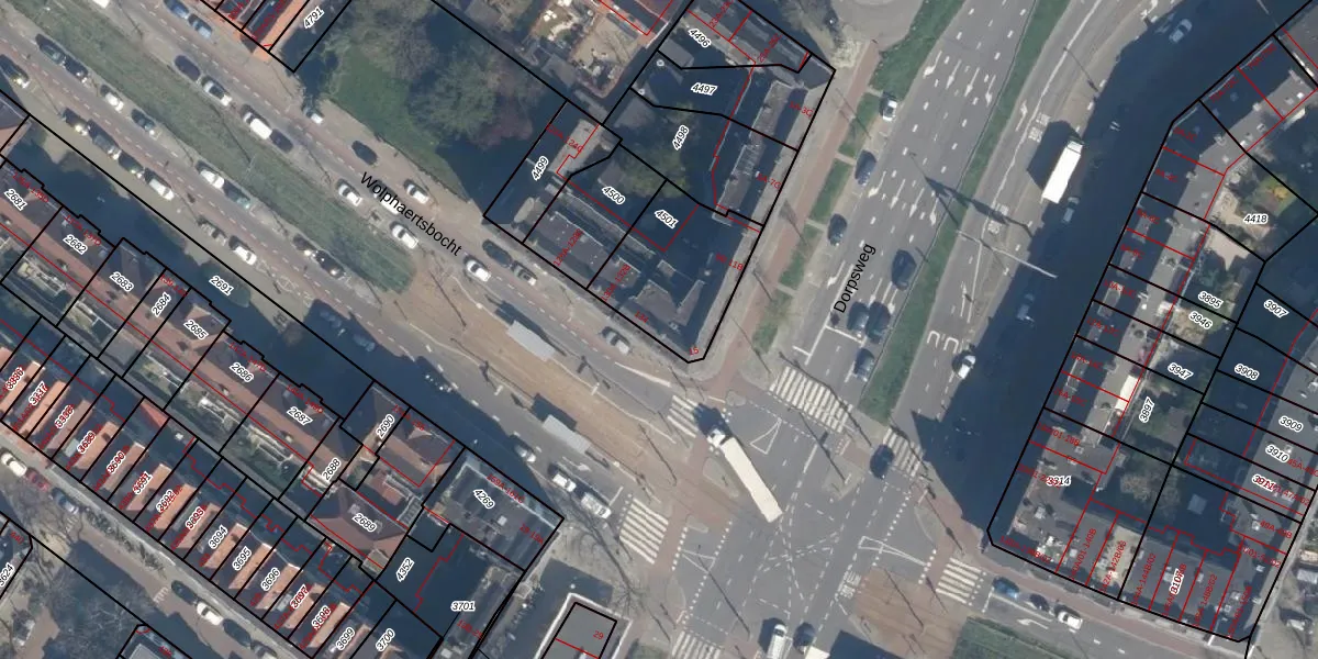 Wolphaertsbocht 134 is gelegen op kadastraal perceel CLS00E4501. Deze kadastrale aanduiding is uniek en wordt gebruikt door het Kadaster om eigendomsrechten en andere zakelijke rechten vast te leggen. Het perceel maakt onderdeel uit van de kadastrale gemeente Charlois.