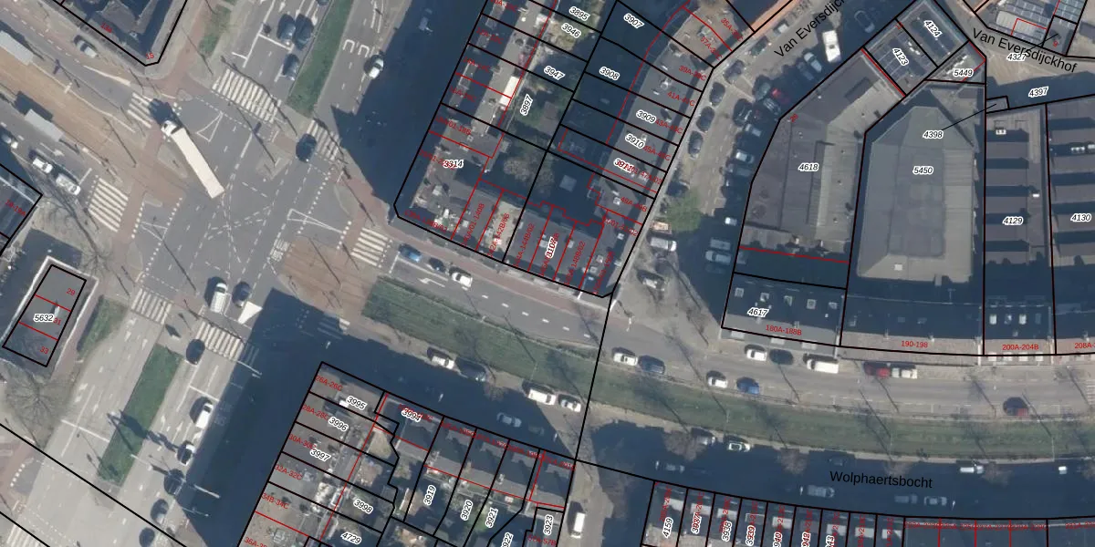 Het perceel waarop het adres ligt is CLS00-E-3107. De afkorting 'CLS00' staat voor kadastrale gemeente Charlois. De gemiddelde perceelgrootte in Charlois is 1147,24 m². Dit perceel is kleiner: de perceeloppervlakte bedraagt 452 m². Het grootste perceel in de kadastrale gemeente is 1,09 km². Het kleinste perceel heeft een oppervlakte van 0 m². Op het perceel liggen in totaal 16 adressen. De huidige grenzen van het perceel zijn digitaal in de Basisregistratie Kadaster (BRK) geregistreerd op 16-09-2009.