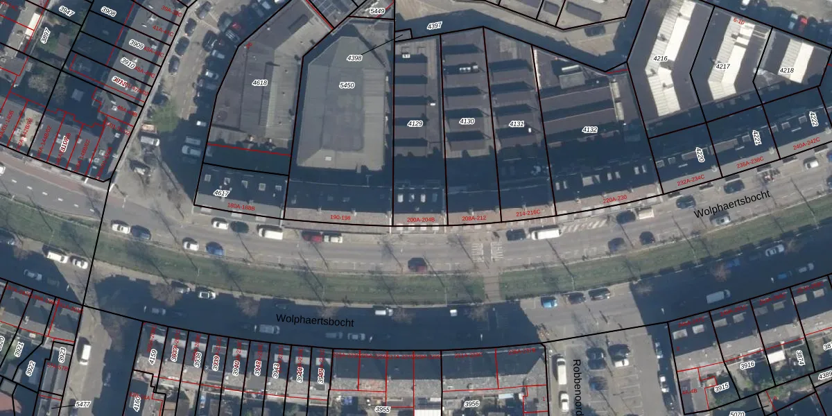 Wolphaertsbocht 202 is gelegen op kadastraal perceel CLS00E4129. Deze kadastrale aanduiding is uniek en wordt gebruikt door het Kadaster om eigendomsrechten en andere zakelijke rechten vast te leggen. Het perceel maakt onderdeel uit van de kadastrale gemeente Charlois.