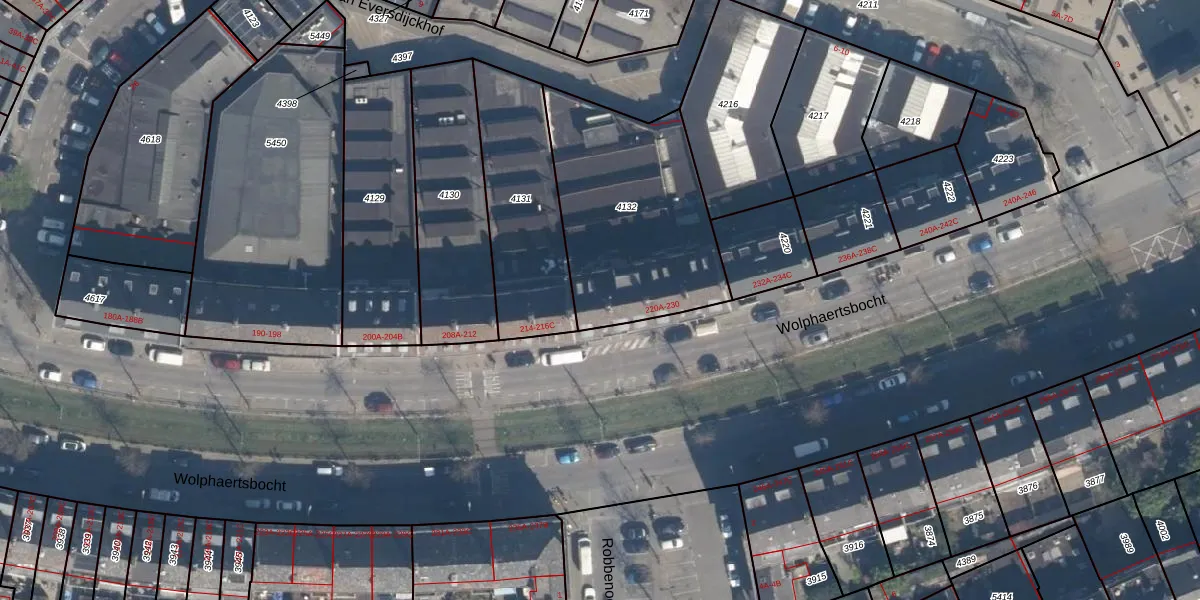 Wolphaertsbocht 220-A is gelegen op kadastraal perceel CLS00E4132. Deze kadastrale aanduiding is uniek en wordt gebruikt door het Kadaster om eigendomsrechten en andere zakelijke rechten vast te leggen. Het perceel maakt onderdeel uit van de kadastrale gemeente Charlois.
