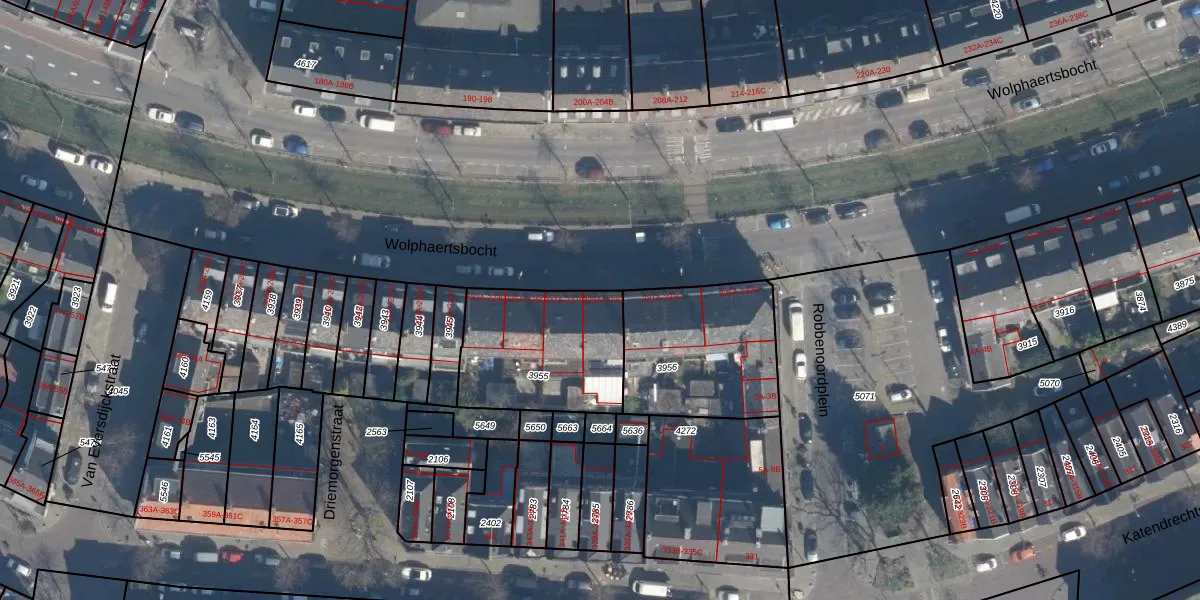Het perceel waarop het adres ligt is CLS00-E-3955. De afkorting 'CLS00' staat voor kadastrale gemeente Charlois. De gemiddelde perceelgrootte in Charlois is 1146,98 m². Dit perceel is kleiner: de perceeloppervlakte bedraagt 542 m². De grootste perceeloppervlakte in de kadastrale gemeente is 1,09 km². De kleinste oppervlakte bedraagt 0 m². Op het perceel liggen in totaal 12 adressen. De huidige grenzen van het perceel zijn digitaal in de Basisregistratie Kadaster (BRK) geregistreerd op 21-01-2026.