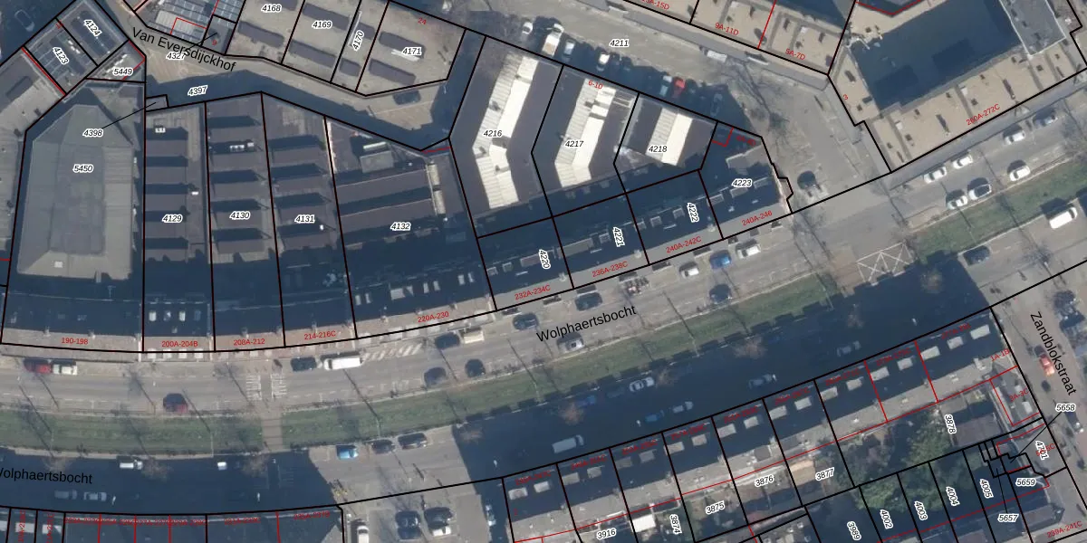 Wolphaertsbocht 234-C is gelegen op kadastraal perceel CLS00E4220. Deze kadastrale aanduiding is uniek en wordt gebruikt door het Kadaster om eigendomsrechten en andere zakelijke rechten vast te leggen. Het perceel maakt onderdeel uit van de kadastrale gemeente Charlois.