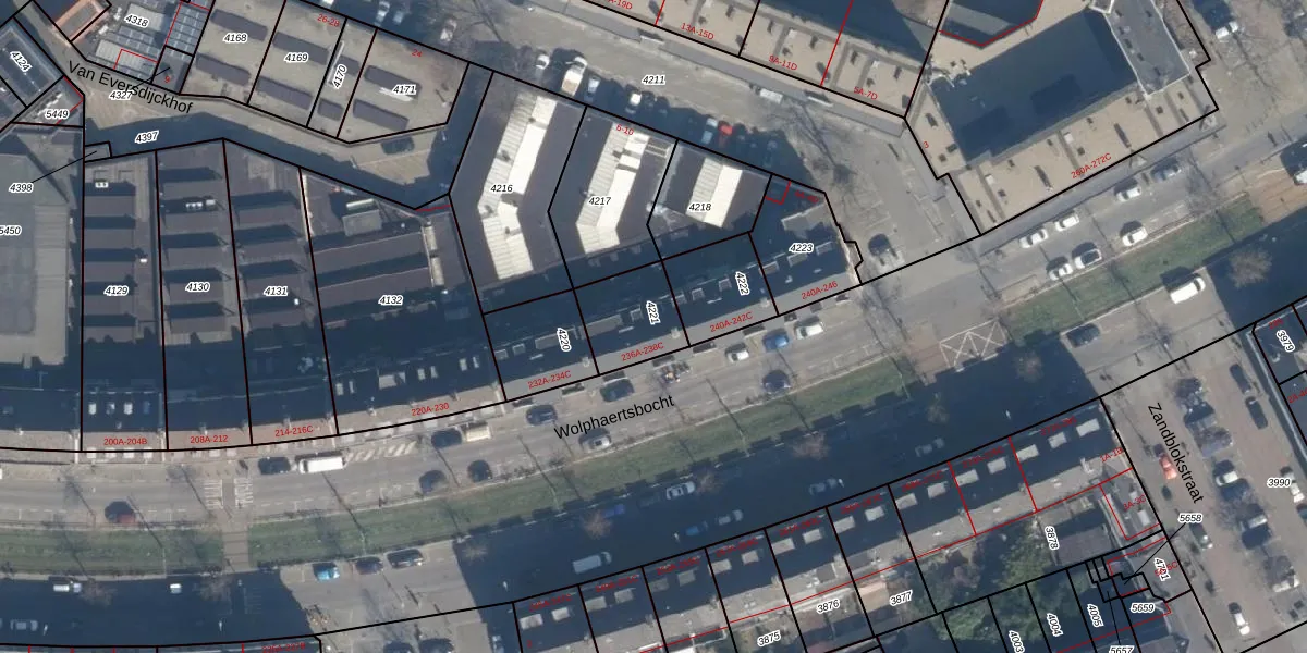 Wolphaertsbocht 238-C is gelegen op kadastraal perceel CLS00E4221. Deze kadastrale aanduiding is uniek en wordt gebruikt door het Kadaster om eigendomsrechten en andere zakelijke rechten vast te leggen. Het perceel maakt onderdeel uit van de kadastrale gemeente Charlois.