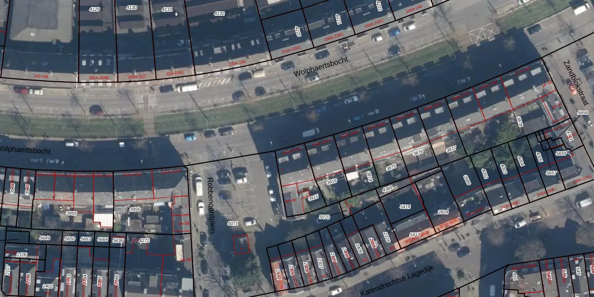 Wolphaertsbocht 247-B is gelegen op kadastraal perceel CLS00E3915. Deze kadastrale aanduiding is uniek en wordt gebruikt door het Kadaster om eigendomsrechten en andere zakelijke rechten vast te leggen. Het perceel maakt onderdeel uit van de kadastrale gemeente Charlois.