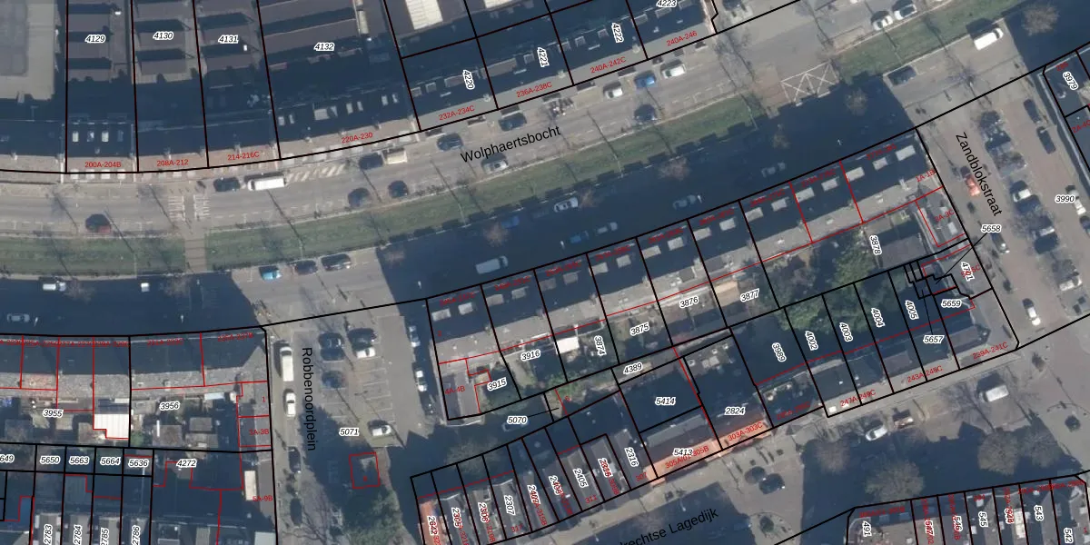 Wolphaertsbocht 253-A is gelegen op kadastraal perceel CLS00E3874. Deze kadastrale aanduiding is uniek en wordt gebruikt door het Kadaster om eigendomsrechten en andere zakelijke rechten vast te leggen. Het perceel maakt onderdeel uit van de kadastrale gemeente Charlois.