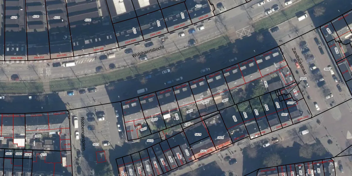 Wolphaertsbocht 257-A is gelegen op kadastraal perceel CLS00E3875. Deze kadastrale aanduiding is uniek en wordt gebruikt door het Kadaster om eigendomsrechten en andere zakelijke rechten vast te leggen. Het perceel maakt onderdeel uit van de kadastrale gemeente Charlois.