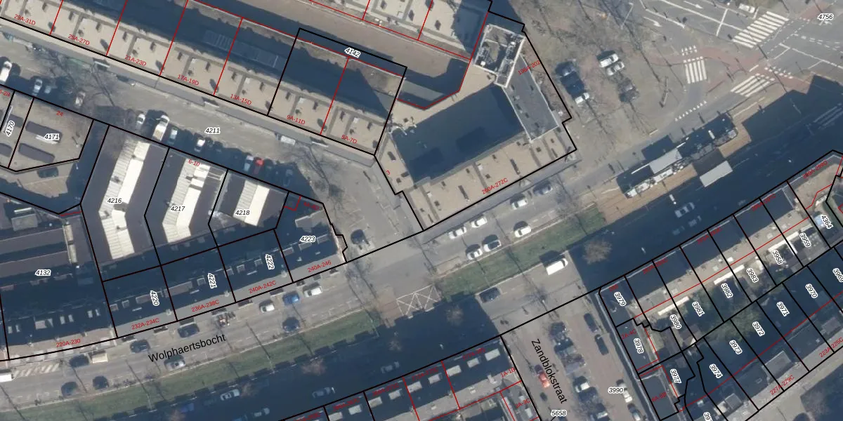 Wolphaertsbocht 260-D is gelegen op kadastraal perceel CLS00E4141. Deze kadastrale aanduiding is uniek en wordt gebruikt door het Kadaster om eigendomsrechten en andere zakelijke rechten vast te leggen. Het perceel maakt onderdeel uit van de kadastrale gemeente Charlois.