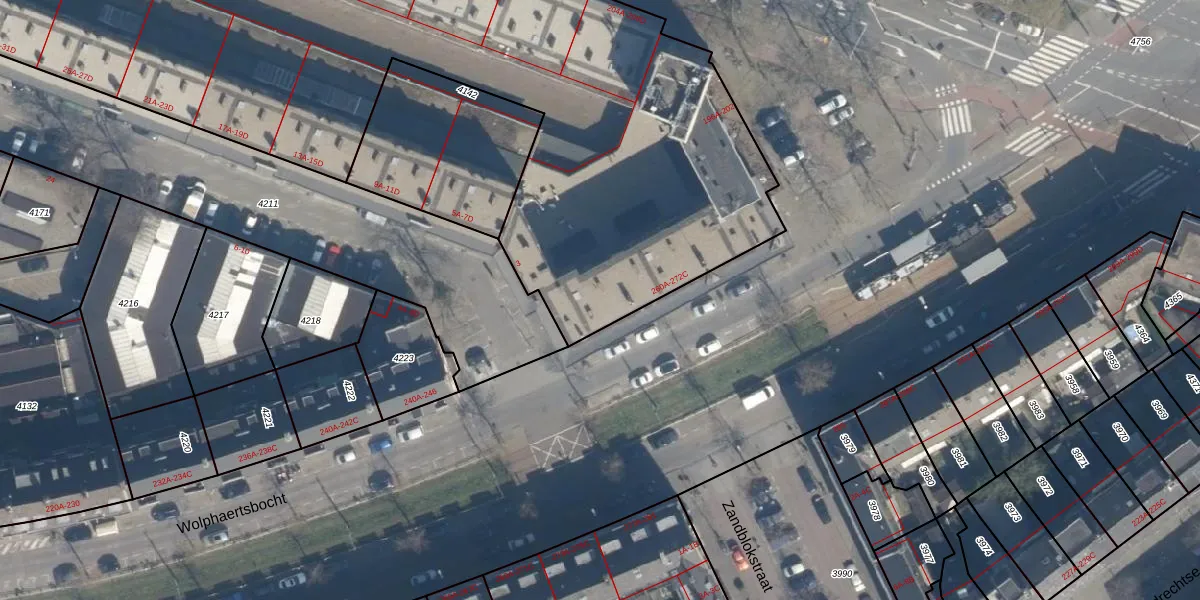 Wolphaertsbocht 262-C is gelegen op kadastraal perceel CLS00E4141. Deze kadastrale aanduiding is uniek en wordt gebruikt door het Kadaster om eigendomsrechten en andere zakelijke rechten vast te leggen. Het perceel maakt onderdeel uit van de kadastrale gemeente Charlois.