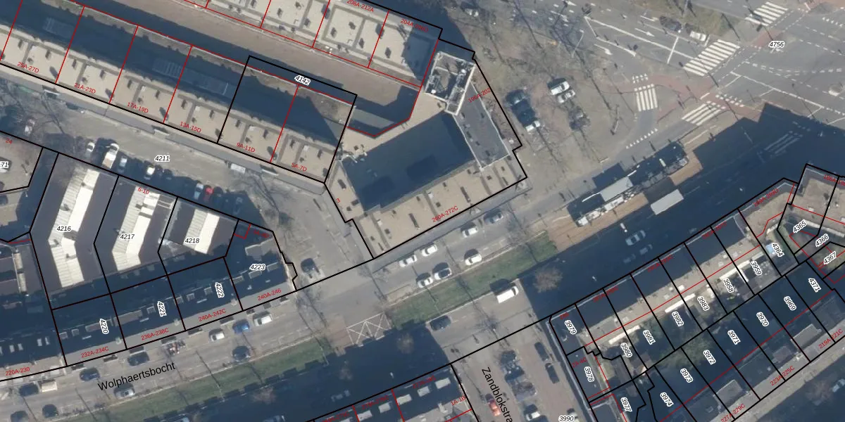 Wolphaertsbocht 264-A is gelegen op kadastraal perceel CLS00E4141. Deze kadastrale aanduiding is uniek en wordt gebruikt door het Kadaster om eigendomsrechten en andere zakelijke rechten vast te leggen. Het perceel maakt onderdeel uit van de kadastrale gemeente Charlois.
