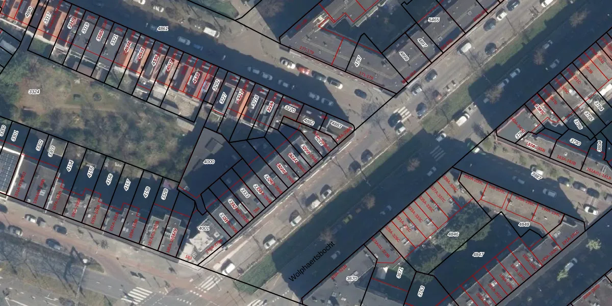 Wolphaertsbocht 294-B is gelegen op kadastraal perceel CLS00E3223. Deze kadastrale aanduiding is uniek en wordt gebruikt door het Kadaster om eigendomsrechten en andere zakelijke rechten vast te leggen. Het perceel maakt onderdeel uit van de kadastrale gemeente Charlois.