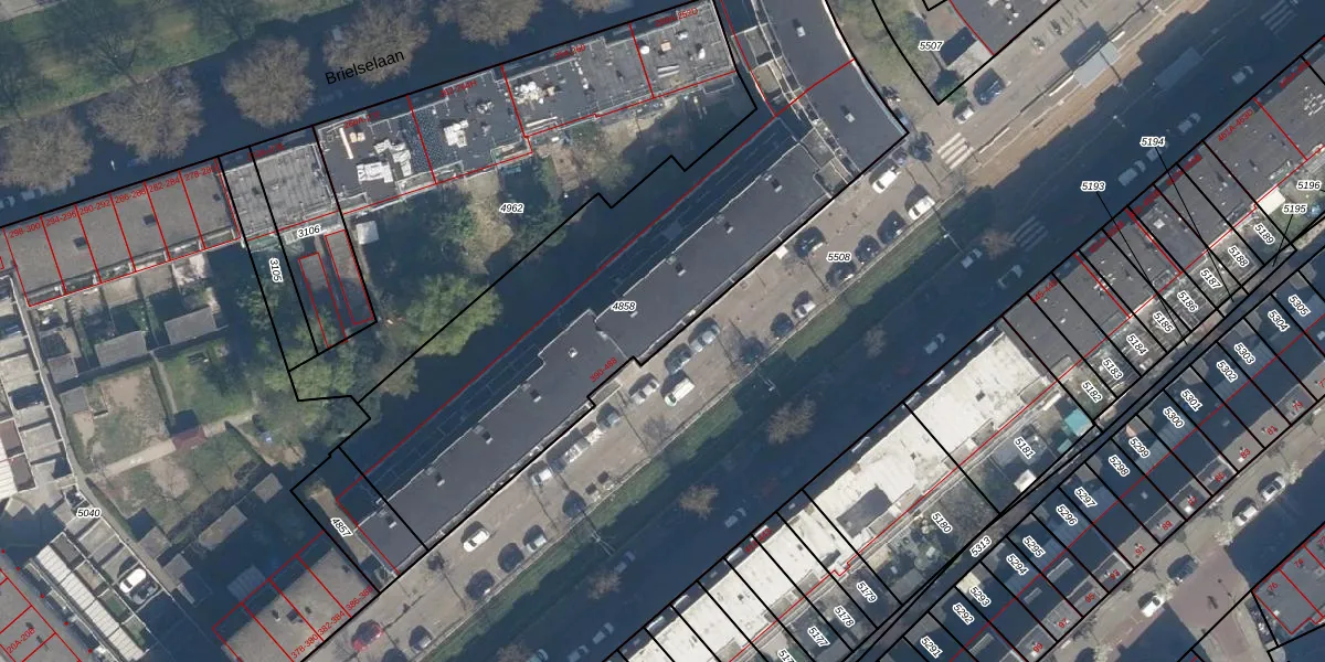 Het perceel waarop het adres ligt is CLS00-E-4858. De afkorting 'CLS00' staat voor kadastrale gemeente Charlois. De oppervlakte van het perceel is 2310 m². Dat is groter dan gemiddeld in Charlois, waar de gemiddelde perceeloppervlakte op 1147,24 m² ligt. Het grootste perceel in de kadastrale gemeente is 1,09 km². Het kleinste perceel heeft een oppervlakte van 0 m². Op het perceel zijn 61 adressen aanwezig. De huidige grenzen van het perceel zijn digitaal in de Basisregistratie Kadaster (BRK) geregistreerd op 21-06-2007.