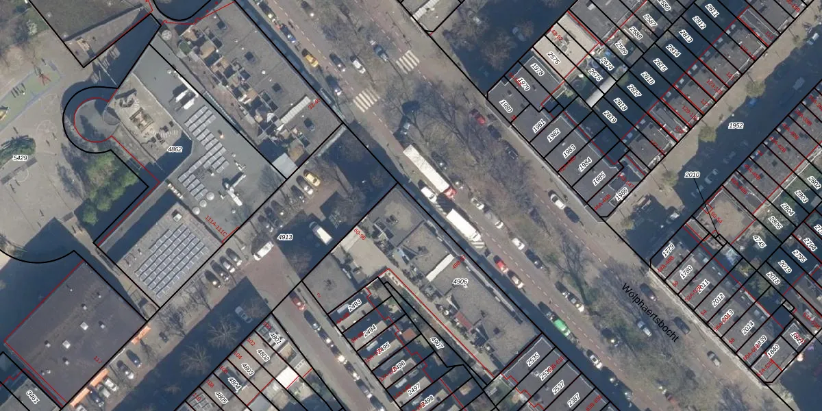 Wolphaertsbocht 49-B is gelegen op kadastraal perceel CLS00E4906. Deze kadastrale aanduiding is uniek en wordt gebruikt door het Kadaster om eigendomsrechten en andere zakelijke rechten vast te leggen. Het perceel maakt onderdeel uit van de kadastrale gemeente Charlois.