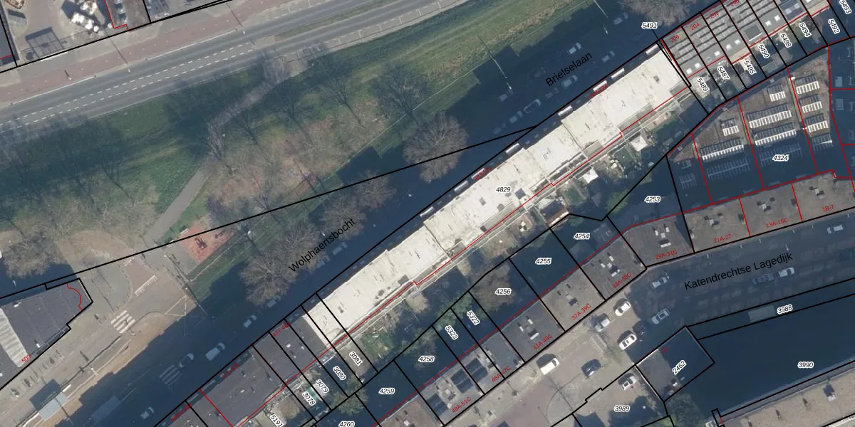 Het adres is gelegen op perceel 4829 in de sectie E en de kadastrale gemeente Charlois. De kadastrale aanduiding is aldus CLS00-E-4829. De oppervlakte van het perceel is 2250 m². Dat is groter dan gemiddeld in Charlois, waar de gemiddelde perceeloppervlakte op 1143,38 m² ligt. Het kleinste perceel in de kadastrale gemeente is 0 m² groot. De grootste perceeloppervlakte is 1,09 km². Er zijn 53 adressen aanwezig op het perceel. In de Basisregistratie Kadaster (BRK) werden de grenzen van het perceel geregistreerd op 19-09-2019.