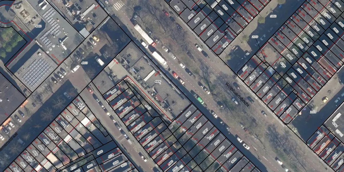 Wolphaertsbocht 55-B is gelegen op kadastraal perceel CLS00E4906. Deze kadastrale aanduiding is uniek en wordt gebruikt door het Kadaster om eigendomsrechten en andere zakelijke rechten vast te leggen. Het perceel maakt onderdeel uit van de kadastrale gemeente Charlois.