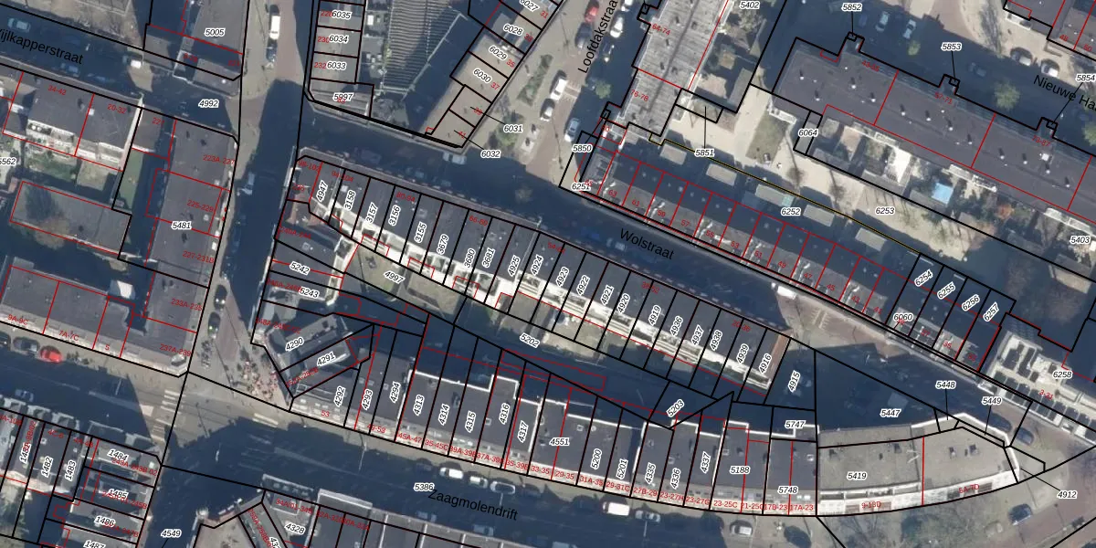 Wolstraat 64 is gelegen op kadastraal perceel RTD07W4924. Deze kadastrale aanduiding is uniek en wordt gebruikt door het Kadaster om eigendomsrechten en andere zakelijke rechten vast te leggen. Het perceel maakt onderdeel uit van de kadastrale gemeente Rotterdam.