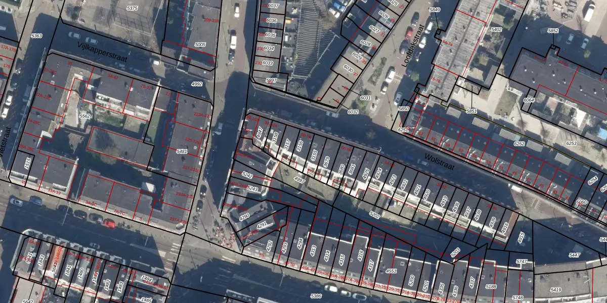 Het perceel waarop Wolstraat 82 staat heeft een oppervlakte van 63 m². Dit is een klein perceel. De perceeloppervlakte wordt geregistreerd door het Kadaster. Gedetailleerde informatie over de maten van dit perceel kunt u vinden in het rapport Kadastrale kaart met maatvoering van Wolstraat 82.