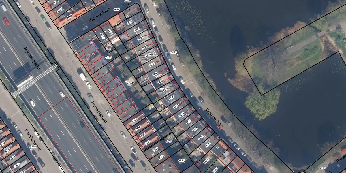 Wouwerlaan 14-B is gelegen op kadastraal perceel OVS00B3576. Deze kadastrale aanduiding is uniek en wordt gebruikt door het Kadaster om eigendomsrechten en andere zakelijke rechten vast te leggen. Het perceel maakt onderdeel uit van de kadastrale gemeente Overschie.
