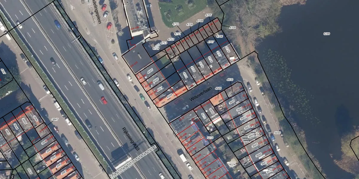 Wouwerlaan 38-A-01 is gelegen op kadastraal perceel OVS00B4568. Deze kadastrale aanduiding is uniek en wordt gebruikt door het Kadaster om eigendomsrechten en andere zakelijke rechten vast te leggen. Het perceel maakt onderdeel uit van de kadastrale gemeente Overschie.